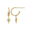 10kt Solid Gold Half Hoop Star Dangle Minimalist Earrings