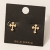 Gold Dipped Cz Ornate Cross Stud Earrings