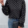 Geometric Print Frill Neck Lantern Sleeve Blouse
